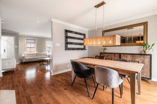 | Salle à manger | 12.9 x 10.9 P | Rez-de-chaussée | Bois |
